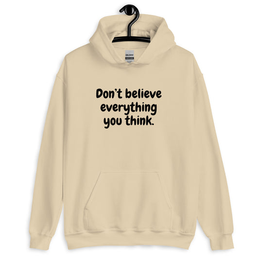 Don't Believe Everything You Think Unisex Hoodie (Blue, Gray, Green, Heliconia, Red, Sand, White)